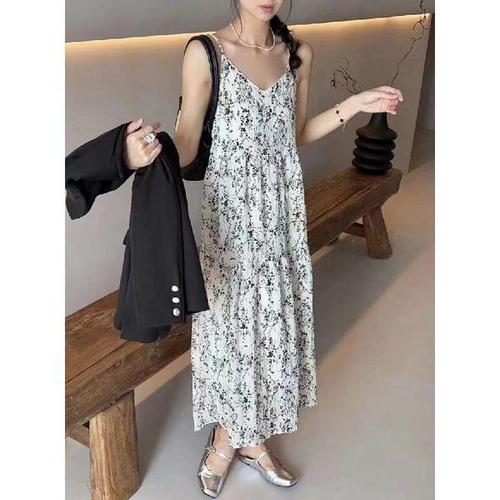 [드리다]여성 여름 프릴 플라워 A라인 빅사이즈 쉬폰 나시 민소매 원피스 40-50대 미시 엄마옷 하객 모임