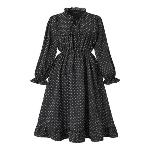 루어스룸 공드리 플라워 가을 브이넥 랩스타일 어깨 셔링 긴팔 나염 여리 롱원피스