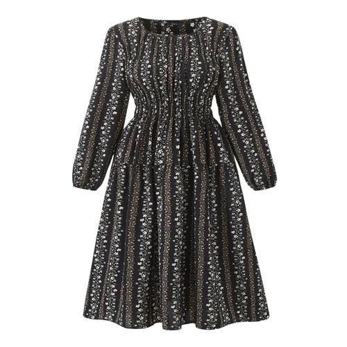 [에이비에프지]V넥 플라워 패턴 긴팔 롱 원피스 APZ1ZO33C