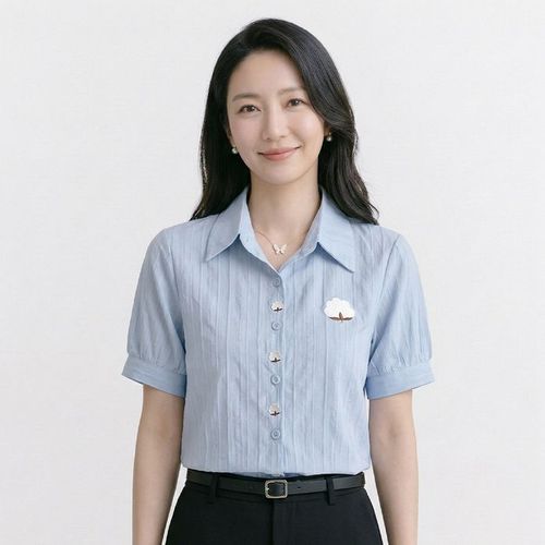 NB3107 여성 플라워 자수 포인트 반팔 셔츠