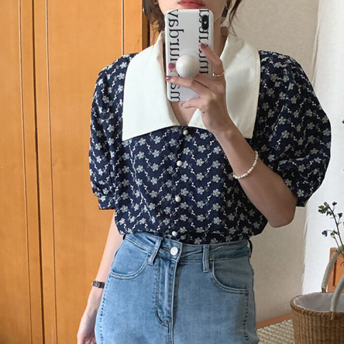 상의 티셔츠 여름 반팔 블라우스 자수 플라워 셔츠 마담 [P63-12A]