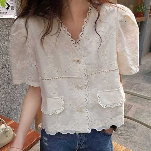 슈팅스타 / 러블리 레이스 플라워 자수 반팔 셔츠 739547