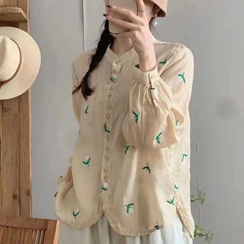 슈팅스타 / 차이나카라 플라워 플로럴 자수 린넨 셔츠 391238