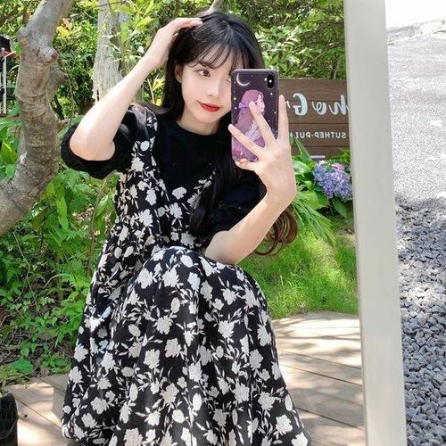 [셀러허브_여성트랜드패션]ONM 플라워 캉캉 뷔스티에 롱 원피스 레이어드 쉬폰룩