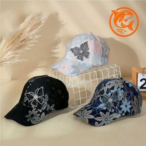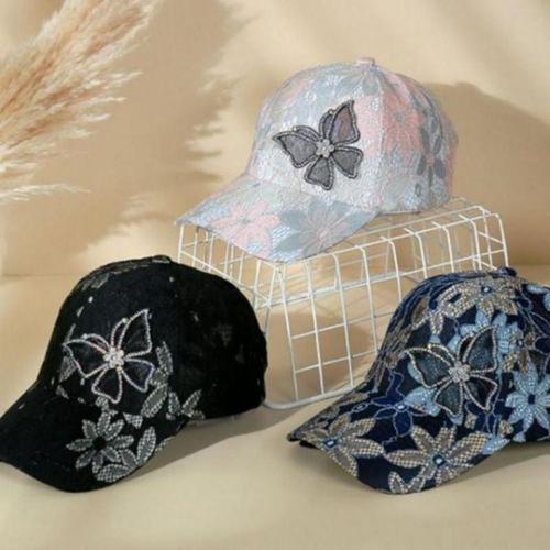 [에이치플러스몰]여성 여름 플라워 큐빅 나비 야구모자 메쉬 볼캡 모자