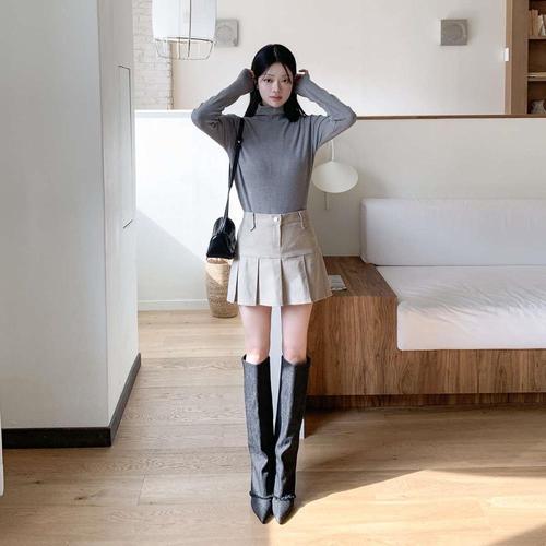 구디프 레이디 니트 플리츠 밴딩 플레어 숏 스커트