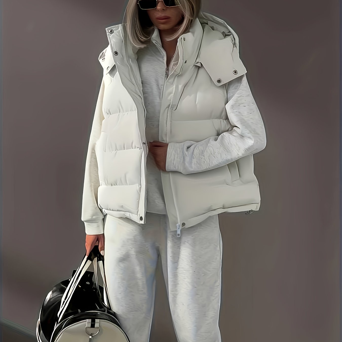TEMU 2025 가을/겨울 신상 유럽&미국 스타일 심플 캐주얼 스트리트 패션 여성용 슬림핏 민소매 후드 따뜻한 조끼 자켓|민소매
