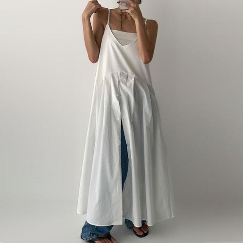 플레어 나시 절개패턴 트렌디 롱원피스
