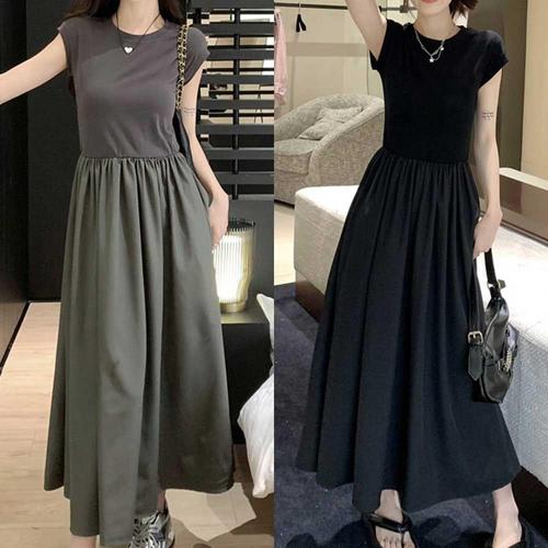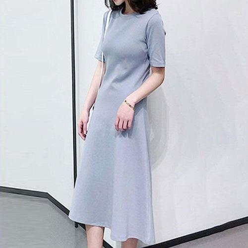 [오너클랜]인기상품 여성원피스 밑단 롱원피스 A라인 반팔 무지 오피스룩 플레어 [WFJHNNH_251110]