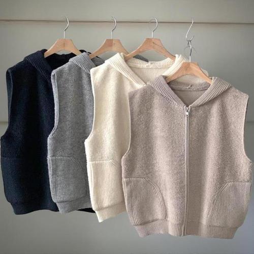 [신상오픈런]여성 캐주얼 뽀글 후리스 후드 집업 니트 베스트 (41370432)