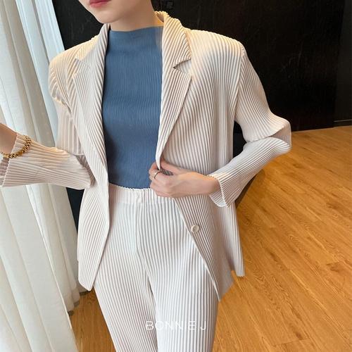 [보니제이]정핏 플리츠 H라인 2버튼 간절기 아우터 골지 포인트