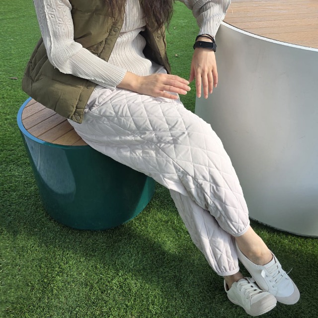 엔케이아울렛 D-여성와이드누빔팬츠 밴딩 통넓은 플리츠 주름 퀄팅 데일리 국내제작