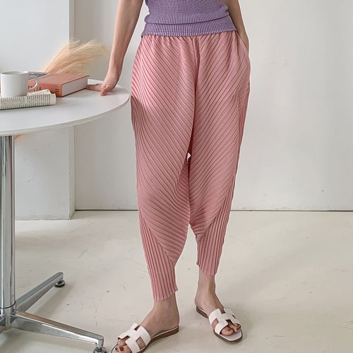 [샵앤] 트리코드 국산 여성 사선 항아리 플리츠 배기팬츠 BLE-WPT-3106-인디핑크