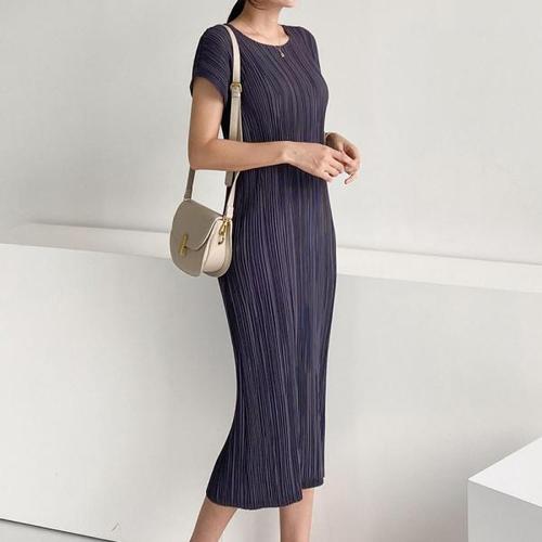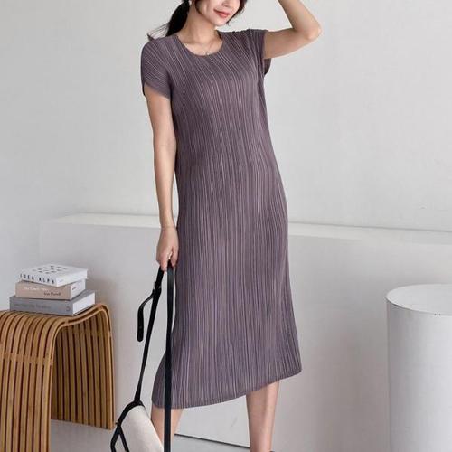 210에디트 여성용 플리츠 반팔 원피스 ZD2OP561