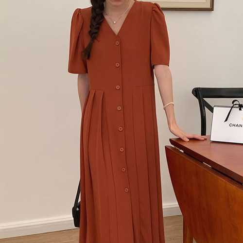 팔콘 원피스 스커트 치마 여사친 여자 면 봄 쉬폰 플리츠 빅사이즈 긴팔 셔츠 무릎 주름보다 슬림핏 KKE1