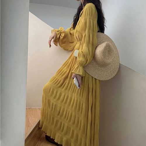 여성 플리츠 주름 치마 부드러운 소재 긴팔 원피스