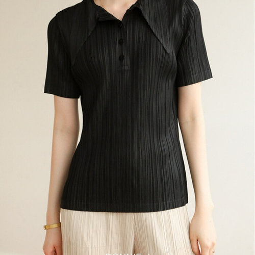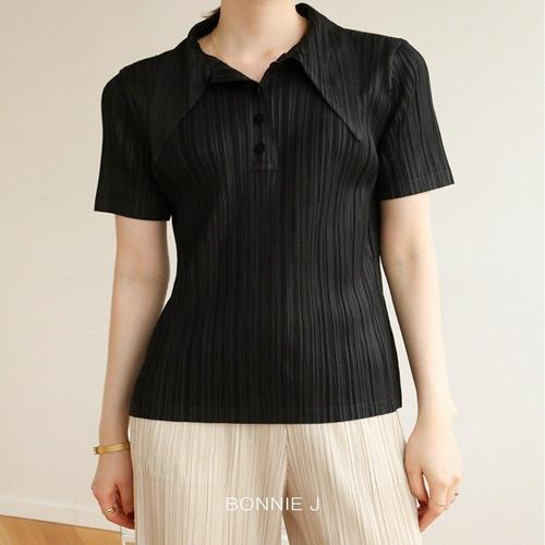 [보니제이]카라넥 반소매 플리츠 주름 반팔티 봄 여름 시원 탄력