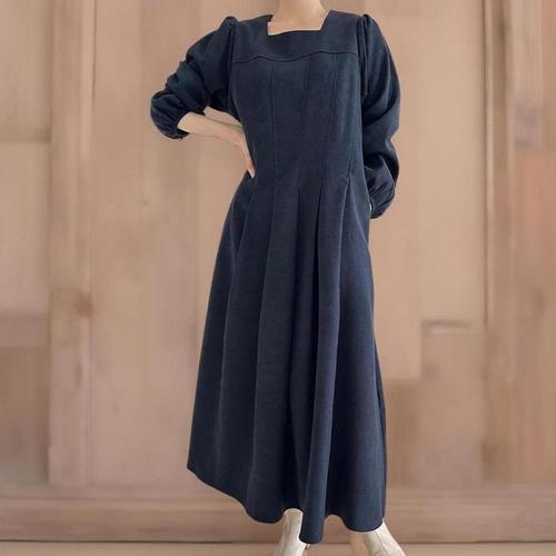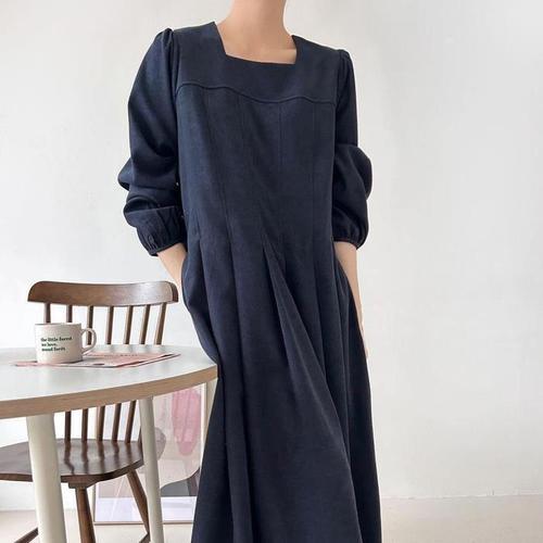 [신상오픈런]여성 스퀘어넥 롱원피스 가을 하객룩 핀턱 플리츠 포켓 디자인 (41992499)