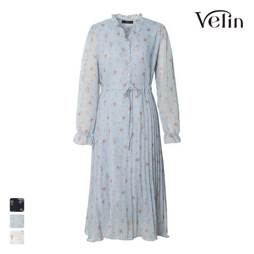 벨린 아이리스 플로 원피스 플리츠 긴팔 롱원피스