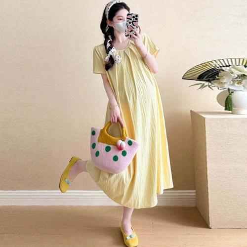 [마미누리]주름에이원피스 임산부원피스 빅사이즈 플리츠 롱원피스 임부복