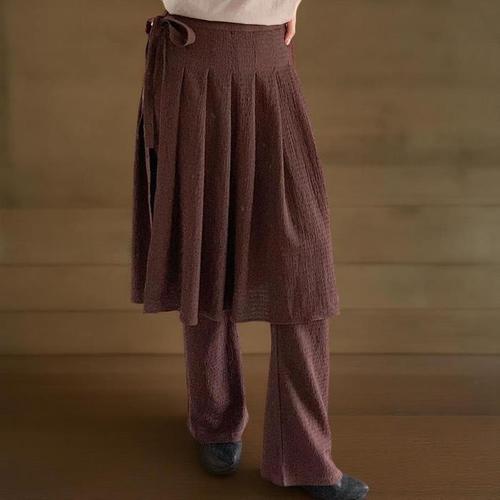 옷자락 / 여자 링클 플리츠 리본 랩스커트 밴딩 와이드팬츠 세