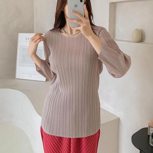 [신상오픈런]라운드넥 주름원단 봄미시룩 8부 긴팔 플리츠티셔츠 (31639310)