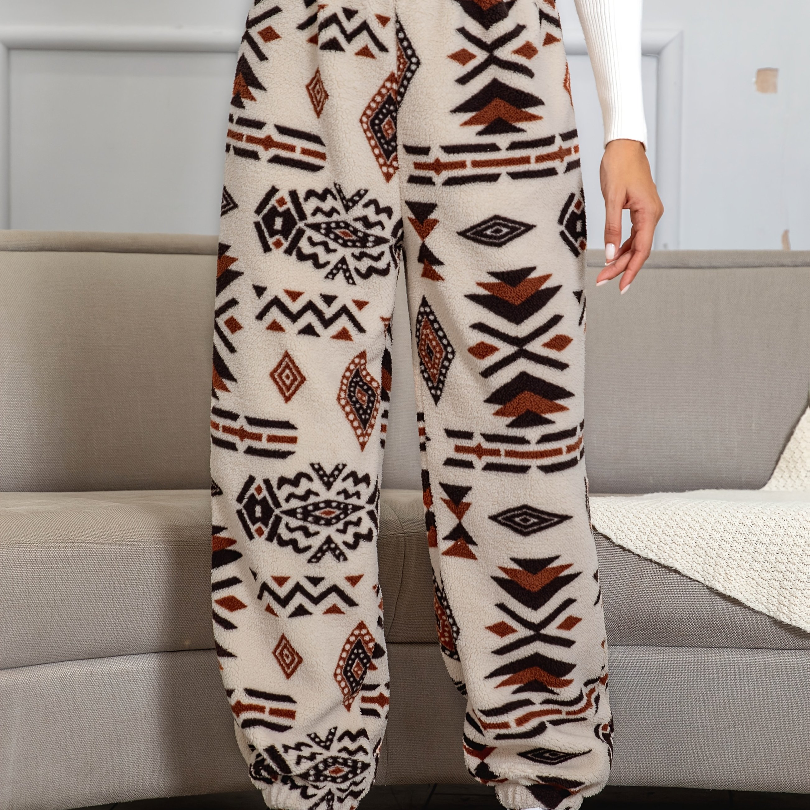 TEMU 여성용 플러시 팬츠 - 베이지/브라운/블랙/화이트/그레이 - 가을/겨울용 레그 트라우저, 일상 및 정장용 - 비침 방지 원단 - 여성 패션 바지, 겨울 의류, 민족 프린트 디자인, 편안한 소재, 스타일리시 하의, 캐주얼 착용, 가을 옷장, 따뜻한 원단, 트렌디 하의, 사무실 복장