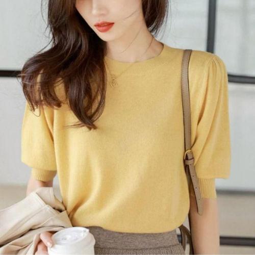 [에이치플러스몰]봄 여름 반팔 라운드 넥 여성 기본 니트 피치
