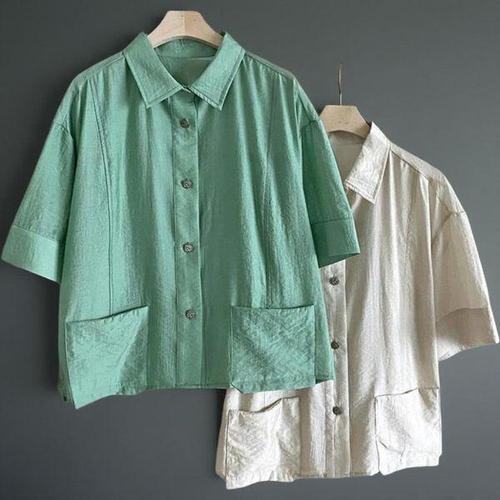 [신상오픈런]여자 무지컬러 레이온 루즈핏 핀턱 7부 블라우스