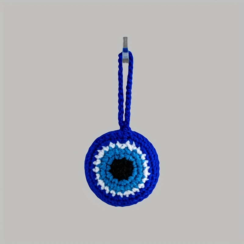 TEMU 수제 터키 악마의 눈 부적 - 블루 & 화이트 크로셰 매달기 펜던트, 블랙 비즈 센터 - 보호 부적, 집, 차, 키체인용 - 행운의 함사 집들이 선물 - 내구성 있는 패브릭 장식 탈리스만 - 정교한 블루 비즈 디자인의 독특한 크로셰 선물 - 차량 및 집 장식용 터키 블루 비즈 악마의 눈 - 매혹적인 부적, 블루 & 화이트 함사 핸드 심볼