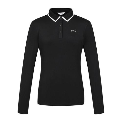 [핑]골프 여성 카라 배색 포인트 긴팔 티셔츠 121E3TO052-BK