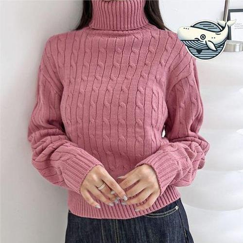 [에이치플러스몰]부드러운 터틀넥 니트티 여성 캐주얼 핑크색