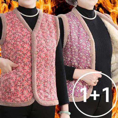 [로즈엘리][1+1] 융털 핑크퍼플 레트로 꽃조끼 기모조끼 2컬러