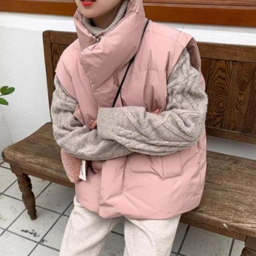 [에이치플러스몰]여성 겨울 데일리 오버핏 하이넥 패딩 베스트 조끼 핑크