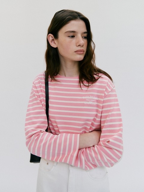 [드파운드] 스트라이프 라운드 넥 티셔츠 핑크