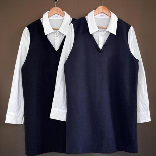 (~XXL까지) 루브 셔츠 레이어드 트위드 원피스 봄 가을 하객룩 오피스룩 모임룩 격식룩 빅사이즈