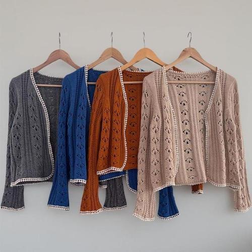 [신상오픈런]여성 펀칭 레이스 배색 가디건 하객 패션 노버튼 (41031532)