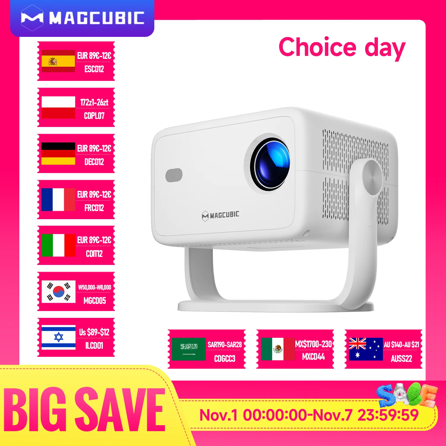Magcubic 4K L018 프로젝터 650ANSI 네이티브 1080P 자동 초점 및 키스톤 360 ° Android 11 BT 5.2 WIFI6 휴대용 홈시어터 회전