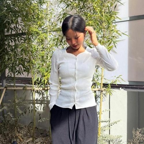 [신상오픈런]하트넥 슬림핏 타이트 슬랜더 긴팔블라우스 무지셔츠 (29949919)