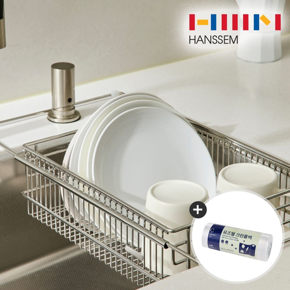 싱크대 공간활용! 길이조절 클리어 올스텐 싱크 바스켓 설거지 식기건조대