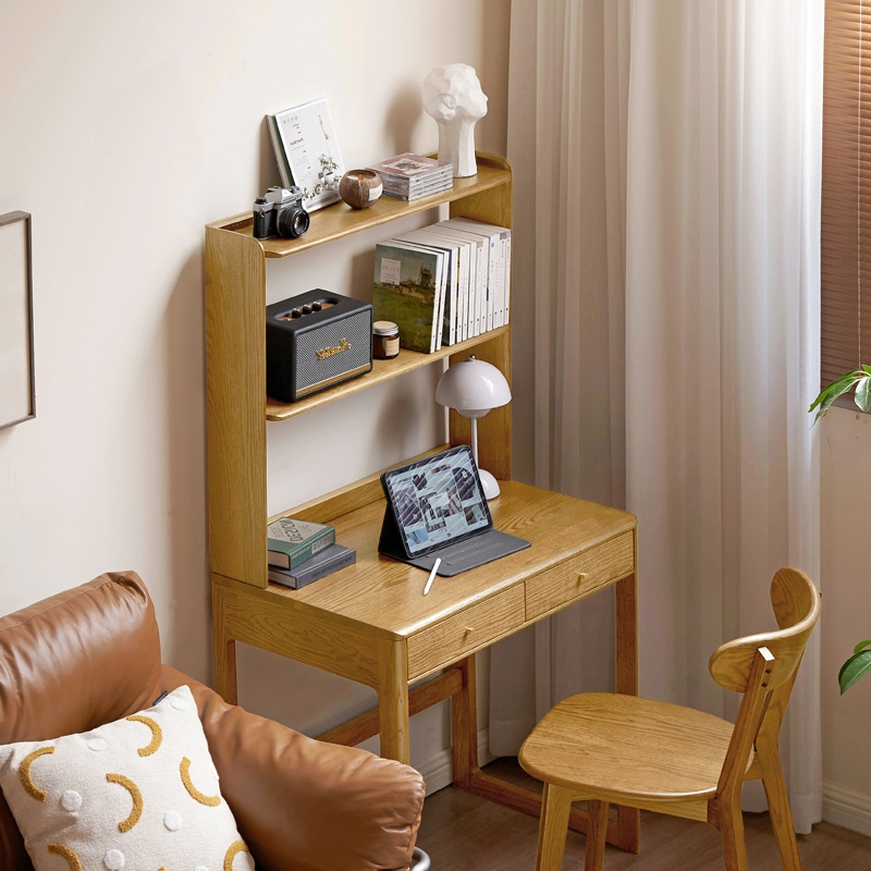 프라하 미니멀 컴팩트 오크 원목 책상 1인용 1000 상부 수납장 세트