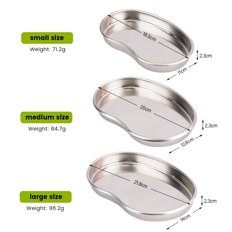 의료용 치과 수술용 화장품 문신 도구용 신장 모양의 스테인레스 스틸 멸균 트레이 1개 - 3가지 크기 이용 가능