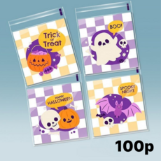 할로윈 디자인 캔디 사탕 간식 포장 봉투 접착비닐, 100장, 보라체크할로윈