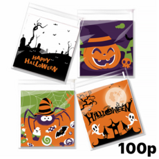 할로윈 디자인 캔디 사탕 간식 포장 봉투 접착비닐, 100장, 할로윈거미호박