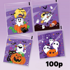 할로윈 디자인 캔디 사탕 간식 포장 봉투 접착비닐, 100장, 유령파티