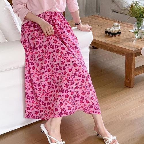 [신상오픈런]여성 할머니 스타일 꽃 패턴 플레어 롱스커트 빅사이즈 밴딩 (39180236)