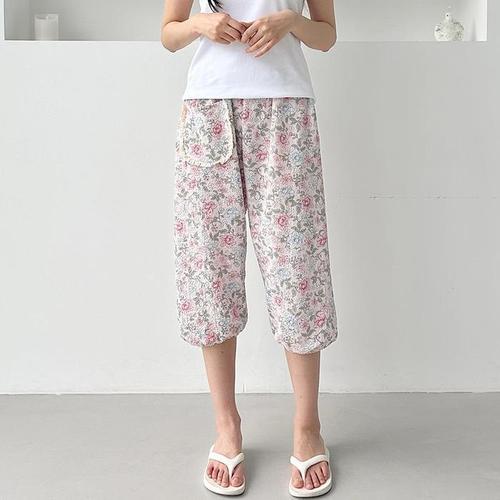 [신상오픈런]여성용 할머니 꽃패턴 5부 밴딩 잠옷 팬츠 (38292990)
