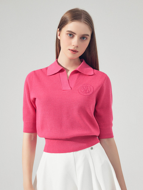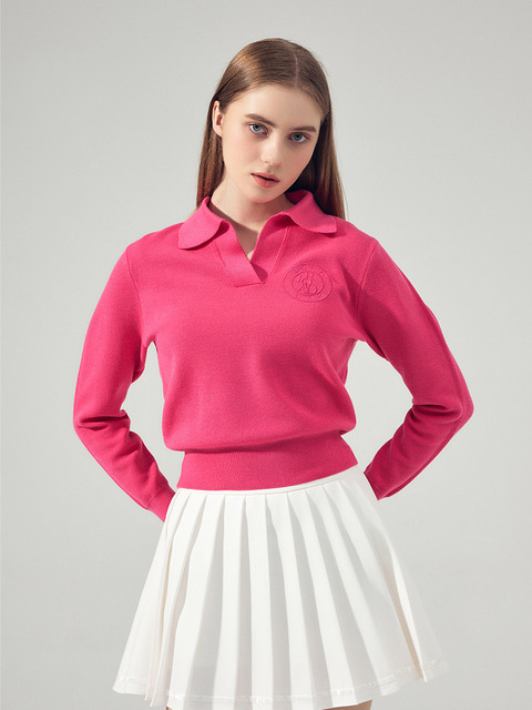 [로드로아르] 시그니쳐 카라 긴팔 니트 핫핑크