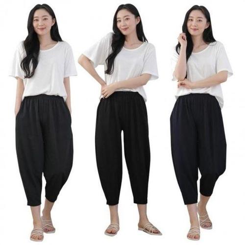 [에이치플러스몰]여성 아사면 밴딩 통바지 1P 여름 얇은 항아리바지