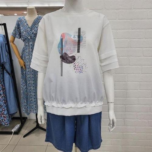 [해리앤]DP01 캉캉 소매 프린트 반팔 티셔츠 HOSP7506